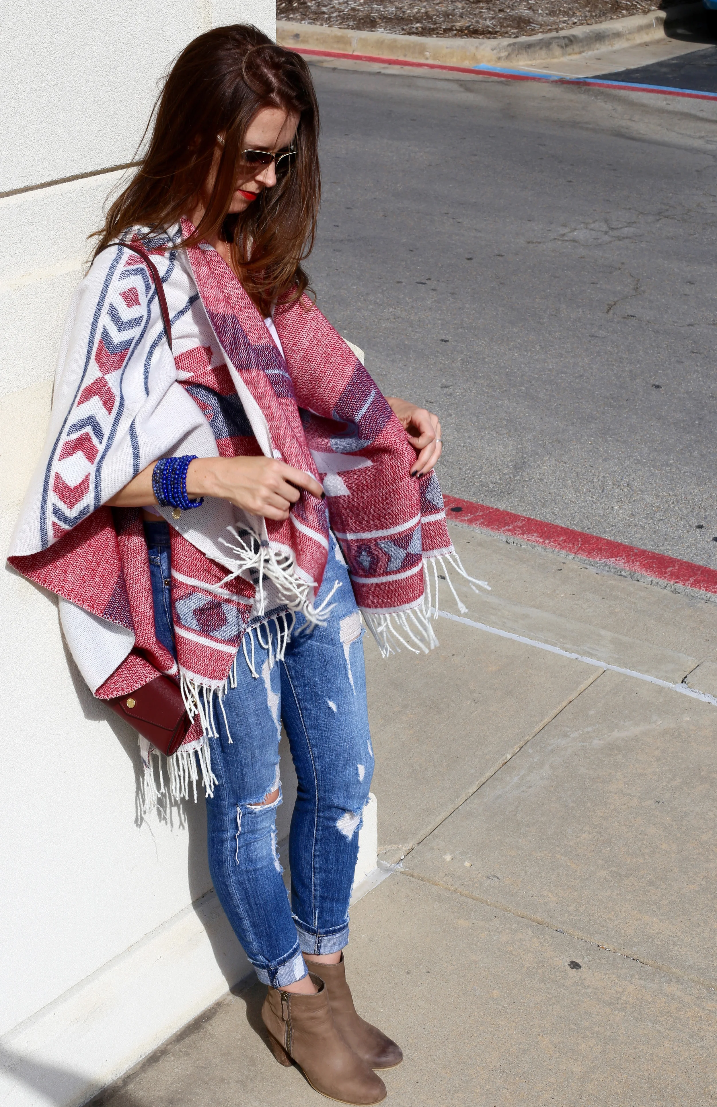 5. Ponchos! Ok, so how do we wear ponchos without looking like we have on a horse blanket? Two rules my friends…and please listen to me so that you don't feel like a farm animal wrapped up for winter when you are staring at yourself in the dressing room…